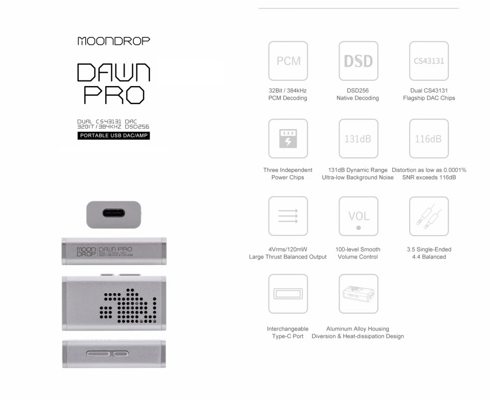 MOONDROP DAWN PRO USB DAC/AMP – Dual CS43131, Balanced Hi-Fi Portable DAC: